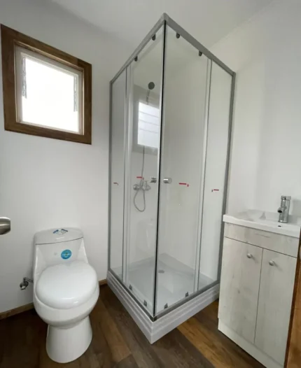 Banheiro completo com pia, vaso sanitário e box para chuveiro (1,20 x 0,70 m).